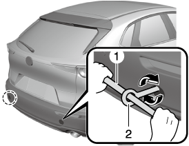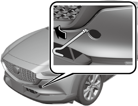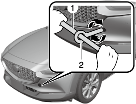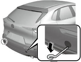 Wrap a flathead screwdriver or jack lever or a similar tool with a soft cloth to prevent damage to a painted bumper, and open the cap located on the front or rear bumper.