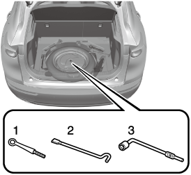 Remove the tiedown eyelet, the jack lever and the lug wrench or equivalent from the luggage compartment.