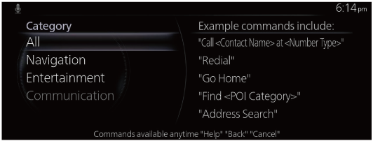 For the “Barge-In” setting, set it using “Settings” on the Mazda Connect home screen or consult an Authorized Mazda Dealer.