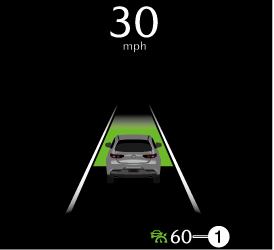If a vehicle ahead is detected while traveling at a constant speed, the system switches to headway control. The vehicle ahead indication is displayed on the screen while in headway control.