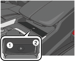 Place a device compliant with the Qi Wireless Charging standard (portable device with a maximum power consumption of 5 W or 15 W or below) in the center of the charging area on the tray.