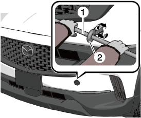 If the tiedown eyelet is not securely tightened, it may loosen or disengage from the bumper when tying the vehicle. Make sure that the tiedown eyelet is securely tightened to the bumper.