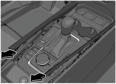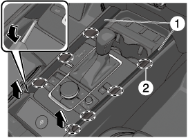 Lift the rear end of the left and right panels of the console using a flathead screwdriver with the end wrapped in a clean cloth.