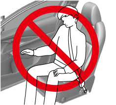 When an adult or large child sits on the front passenger seat, decreasing the total seated weight on the front passenger seat required for air bag deployment is dangerous. The front passenger seat weight sensors will detect the reduced total seated weight condition and the front passenger front and side air bags and knee air bags, and the seat belt pretensioner system will not deploy during an accident. The front passenger will not have the supplementary protection of the air bag, which could result in serious injury. Decreasing the total seated weight on the front passenger seat could result in an air bag not deploying under the following conditions, for example: