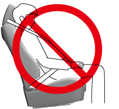 Adjust the front seats as far back as possible and always sit upright against the seatbacks with seat belts worn properly.