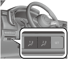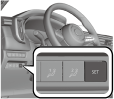 The seat adjustment switch/SET switch/outer mirrors/active driving display for the driver's seat is operated to adjust the position.