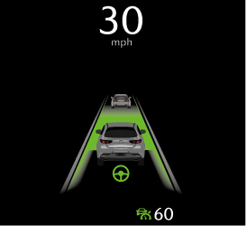 If a vehicle ahead is detected while traveling at a constant speed, the system switches to headway control. The vehicle ahead indication is displayed on the screen while in headway control.