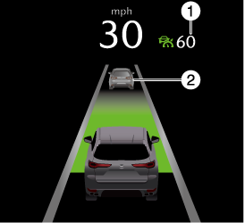 If a vehicle ahead is detected while traveling at a constant speed, the system switches to headway control. The vehicle ahead indication is displayed on the screen while in headway control.