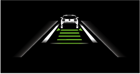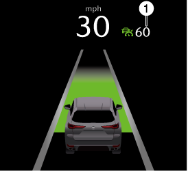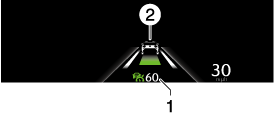 If a vehicle ahead is detected while traveling at a constant speed, the system switches to headway control. The vehicle ahead indication is displayed on the screen while in headway control.