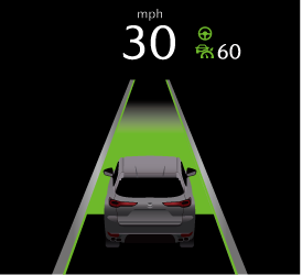 If a vehicle ahead is detected while traveling at a constant speed, the system switches to headway control. The vehicle ahead indication is displayed on the screen while in headway control.