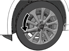 Turn the jack handle clockwise and raise the vehicle high enough so that the spare tire can be installed. Before removing the lug nuts, make sure your Mazda is firmly in position and that it cannot slip or move.
