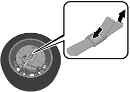 When pulling the flat tire belts, wrap the buckle with a cloth. If the buckle directly contacts the aluminum wheel, the wheel may be damaged.