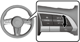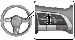 If the distance between vehicles control is disabled using Mazda Connect, the system switches to the cruise control. At this time, the MRCC switch functions as the cruise control switch.