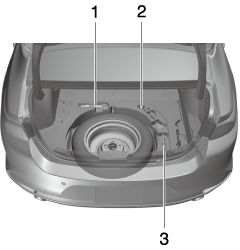 Remove the tiedown eyelet, the jack lever and the lug wrench or equivalent from the luggage compartment.