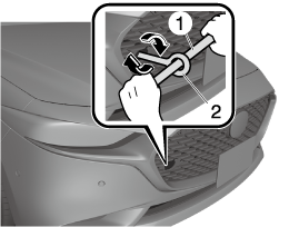 Wrap a flathead screwdriver or jack lever or a similar tool with a soft cloth to prevent damage to a painted bumper, and open the cap located on the front or rear bumper.