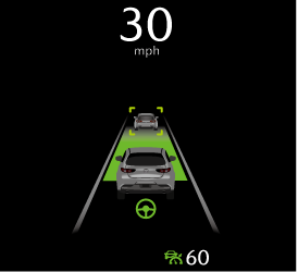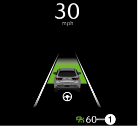 If a vehicle ahead is detected while traveling at a constant speed, the system switches to headway control. The vehicle ahead indication is displayed on the screen while in headway control.