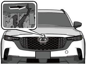 Insert your hand into the hood opening, slide the latch lever in the direction of the arrow as shown in the illustration, and lift up the hood.