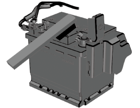 Keep flames and sparks away from lead-acid battery cells and do not allow metal tools to contact the positive (+) or negative (-) terminal of the lead-acid battery when working near a lead-acid battery. Do not allow the positive (+) terminal to contact the vehicle body.