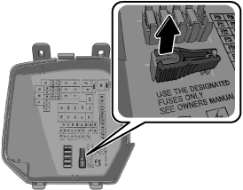 Pull the fuse straight out with the fuse puller provided on the fuse block located in the engine compartment.