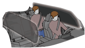 When the air bag crash sensors detect a side impact of greater than moderate force, the system inflates the side air bag only on the side in which the vehicle was hit. The side air bag inflates quickly to reduce injury to the driver or front passenger's chest caused by directly hitting interior parts such as a door or window.