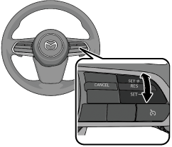 If the distance between vehicles control is disabled using the Mazda Connect, the system switches to the cruise control. At this time, the MRCC switch functions as the cruise control switch.
