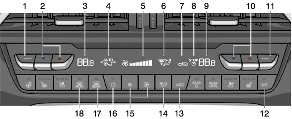The display differs depending on the climate control systems, or whether or not the seat warmer, seat ventilation and heated steering wheel are equipped. Refer to the following sections for details.