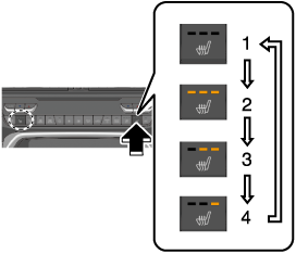 The indicator light in the seat warmer switch turns on according to the set temperature.