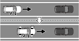 Head-on collision mitigation is a function designed to reduce damage in the event of a collision with a vehicle approaching in the opposite direction.