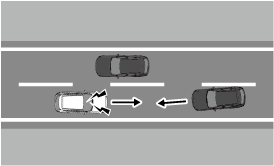 If there is a possibility of your vehicle colliding with a vehicle approaching from the rear sides, you are notified of possible danger by a screen display and a warning sound. Furthermore, if the possibility of a collision increases, brake control is performed to avoid collision or reduce damage in the event of a collision.