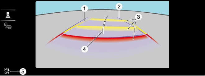 Indicates the approximate projected path of the vehicle. The projected vehicle path lines move in conjunction with the steering wheel operation. |