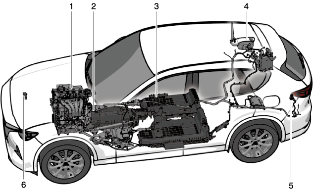 Depending on the driving condition and driving mode, the engine operates as a power source or generator for the wheels, and stops when power or power generation is not required.