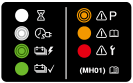 Turns on if there is a problem with the charging system when the charging connector is connected. Wait a few minutes then reconnect the charging connector. |