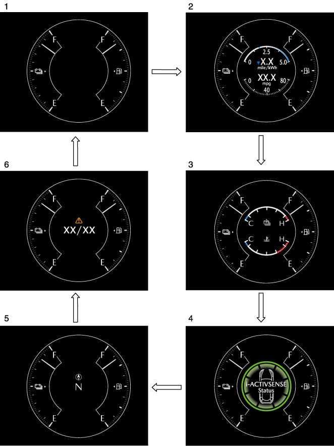 The display changes each time the INFO switch is pressed.