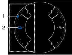 The blue pointer indicates the lower limit of the remaining amount of power in the high voltage battery that can be used when EV mode is selected. The position of the blue pointer changes depending on the condition of the high voltage battery and the temperature.