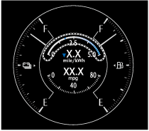 The arrow on the instantaneous electrical power consumption rate gauge indicates the average electrical power consumption rate.