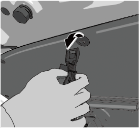 Remove the strap when opening/closing the hood. If the hood is opened/closed while the strap is engaged, the strap or hook may be damaged.