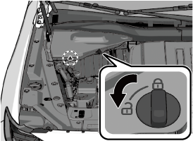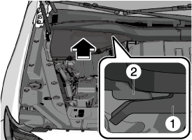 Keep flames and sparks away from lead-acid battery cells and do not allow metal tools to contact the positive (+) or negative (-) terminal of the lead-acid battery when working near a lead-acid battery. Do not allow the positive (+) terminal to contact the vehicle body.