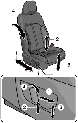 The seat-bottom power adjustment is operated by motors. Avoid extended operation because excessive use can damage the motors.