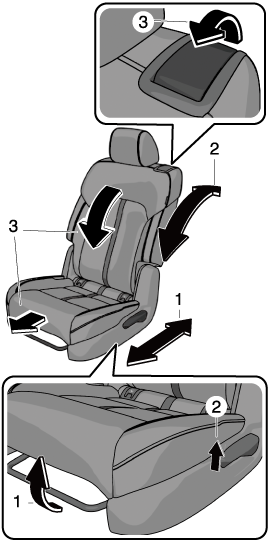 The seatback folds forward and the seat slide lock is released.