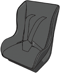 An infant seat provides restraint by bracing the infant's head, neck and back against the seating surface.