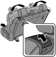 Depending on the position of a front seat, it may not be possible to fold a second-row seatback all the way down because it may hit the seatback of the front seat which could scratch or damage the front seat or its pocket. Remove the head restraint on the second-row outboard seat if necessary.