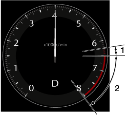 When the tachometer needle enters the STRIPED ZONE, this indicates to the driver that the gears should be shifted before entering the RED ZONE.