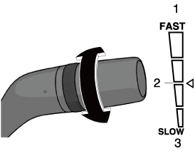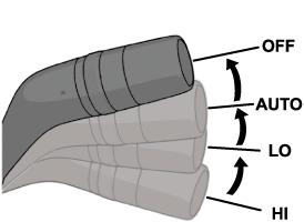 In the LO position, the windshield wipers operate at low speed. In the HI position, the wipers operate at high speed.