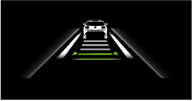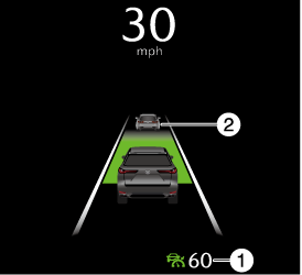 If a vehicle ahead is detected while traveling at a constant speed, the system switches to headway control. The vehicle ahead indication is displayed on the screen while in headway control.