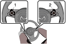 Pull the up switch (+/OFF) or the down switch (-) of the steering shift switches toward you.