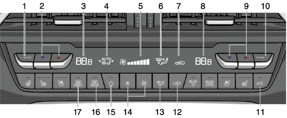 The display differs depending on the climate control system, or whether or not the seat warmer, seat ventilation and heated steering wheel are equipped.