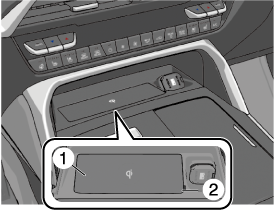 Place a device compliant with the Qi Wireless Charging standard (portable device with a maximum power consumption of 5 W or 15 W or below) in the center of the charging area on the tray.