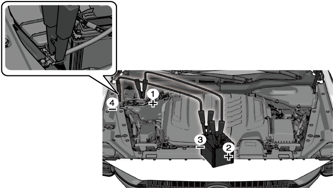 4. Location shown in the figure (do not connect to the negative (-) terminal of the depleted lead-acid battery)
