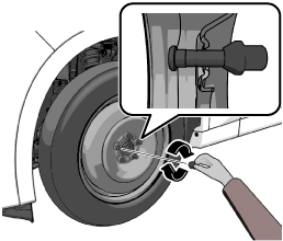 Loosen the lug nuts by turning them counterclockwise one turn each, but do not remove any lug nuts until the tire has been raised off the ground.
