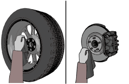 Remove the lug nuts by turning them counterclockwise; then remove the wheel and center cap.